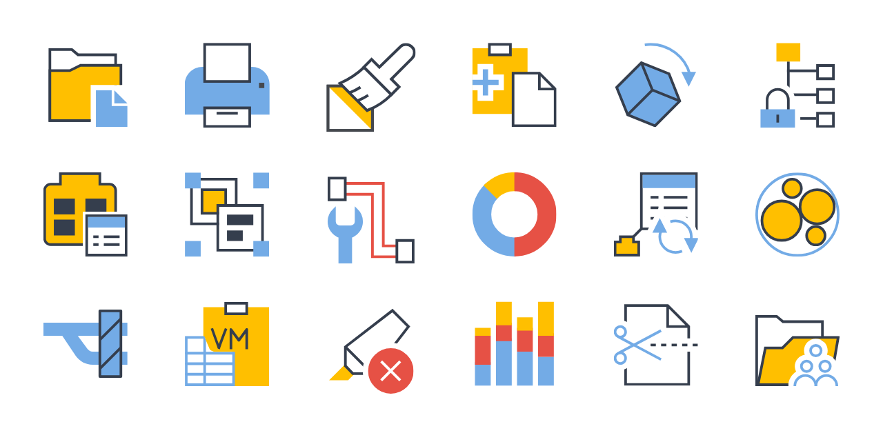 You own the delivered artwork, and rights transfer on final payment. As your software evolves, we can extend the set, at any time. We create reliable long-term partnerships that have spanned decades and can pick up a legacy project and drop in perfectly matching icons, immediately. This is why companies requiring hundreds or thousands of icons initially, like Hexagon, Aveva, Synopsys, QinetiQ, Zuken and many others, keep returning as software functionality expands and we are always ready to assist.